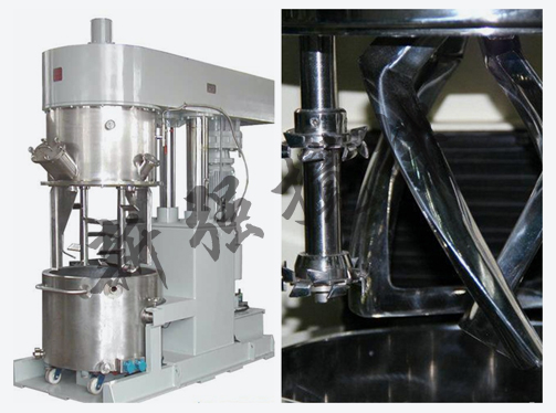 由攪拌桶、攪拌蓋、攪拌動力頭(含兩組低速攪拌槳、兩組高速分散器及一組刮壁槳)、溫控裝置、升降裝置、鎖桶裝置及控制系統(tǒng)等組成。