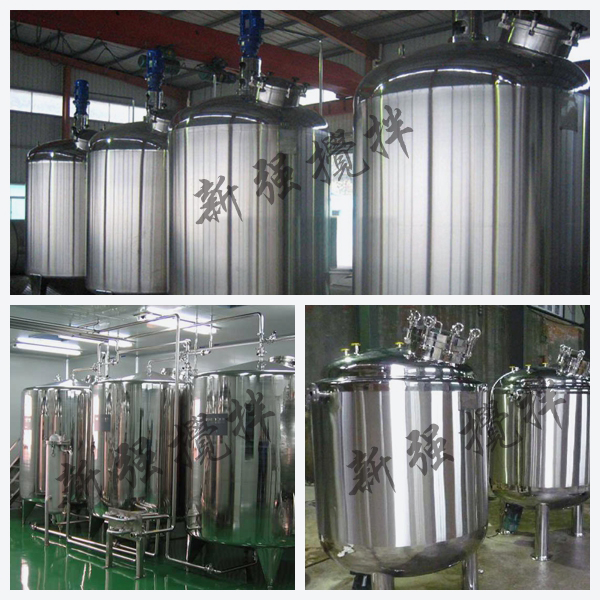 不銹鋼儲罐設(shè)備分缸體、缸蓋、進(jìn)料口、出料口,均由不銹耐酸鋼304或316制成,罐體采用立式或臥式單層或雙層結(jié)構(gòu),并根據(jù)用戶要求充填保溫材料,按GMP技術(shù)條件進(jìn)行,缸體內(nèi)拋光,外部采用鏡面板或磨砂板保溫。頂部開設(shè)進(jìn)水口、回流口、消毒口、清洗口、人孔并安裝空氣呼吸器, 且可與管道連接,便于連續(xù)進(jìn)各種配料,缸底為錐度,出料口便于放料。