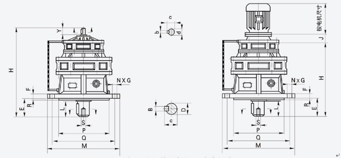 d、結構緊湊,體積?。号c同功率的其它減速機相比,重量體積小1/3以上,由于是行星傳動,輸入軸和輸出軸在同一軸線上,以獲得盡可能小的尺寸。