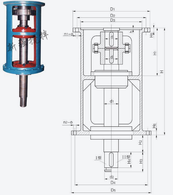 注:1、Ⅰ型為夾殼式聯(lián)軸器聯(lián)接