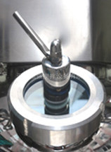 物料在水鍋、油鍋內(nèi)通過加熱、攪拌進(jìn)行混合反應(yīng)后,由真空泵吸入乳化鍋,通過乳化鍋內(nèi)上部的中心攪拌、聚四氟乙烯刮板始終迎合攪拌鍋形體,掃凈掛壁粘料,使被刮取的物料不斷產(chǎn)生新界面,再經(jīng)過葉片的剪斷、壓縮、折疊,使其攪拌、混合而向下流往鍋體下方的均質(zhì)器處,物料再通過高速旋轉(zhuǎn)的切割輪與固定的切割套之間所產(chǎn)生的強(qiáng)力的剪斷、沖擊、亂流等過程,物料在剪切縫中被切割,迅速破碎成200um-0.2um的微粒,由于乳化鍋內(nèi)處于真空狀態(tài),物料在攪拌過程中產(chǎn)生的氣泡被及時(shí)抽走。采用抽真空的方式,使所生產(chǎn)的制品在攪拌過程中不再混入氣泡,從而保證可制造出富有光澤、細(xì)膩及延展性良好的產(chǎn)品。