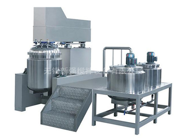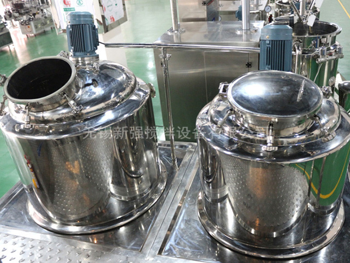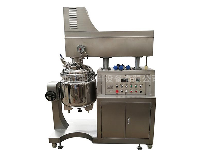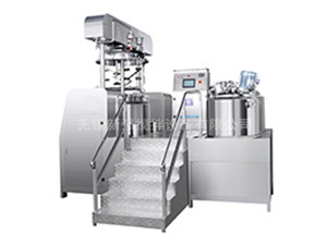 真空乳化機(jī)主要由水相鍋、油相鍋、乳化攪拌主鍋、真空系統(tǒng)、升降系統(tǒng)(可選)、電器控制系統(tǒng)(可選用PLC)、操作平臺(tái)等組成。
